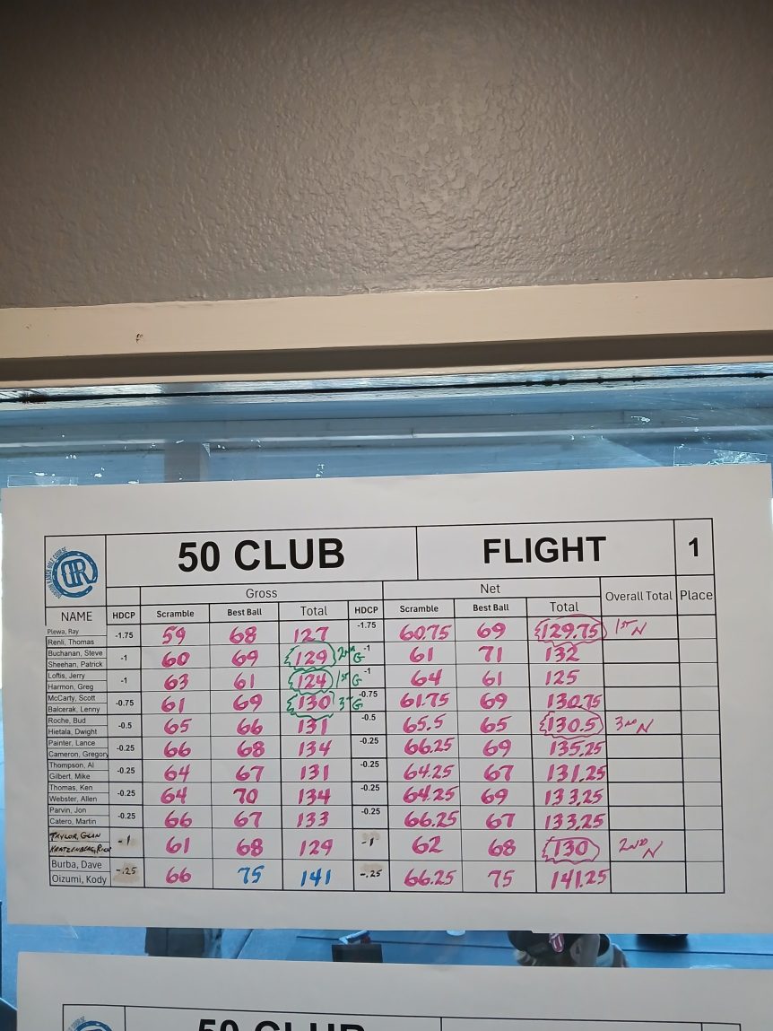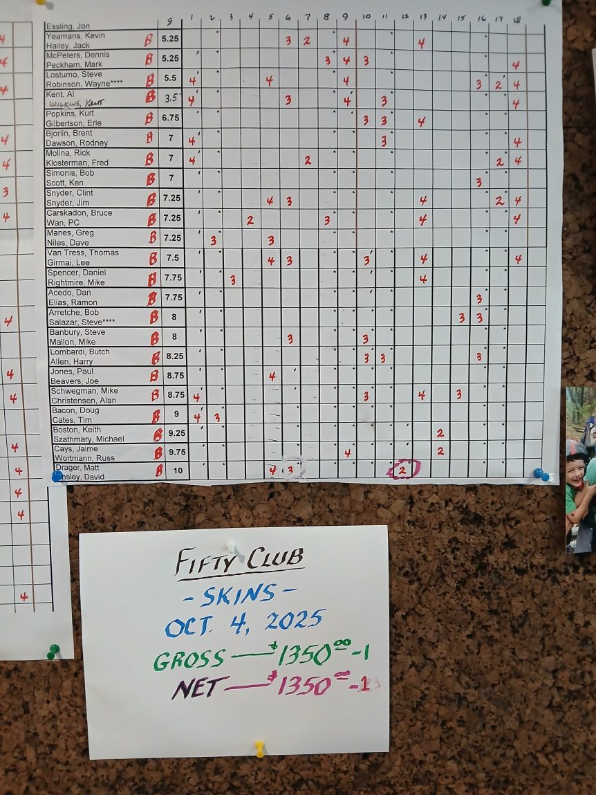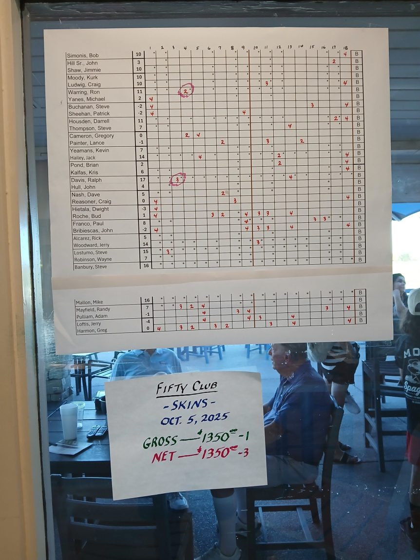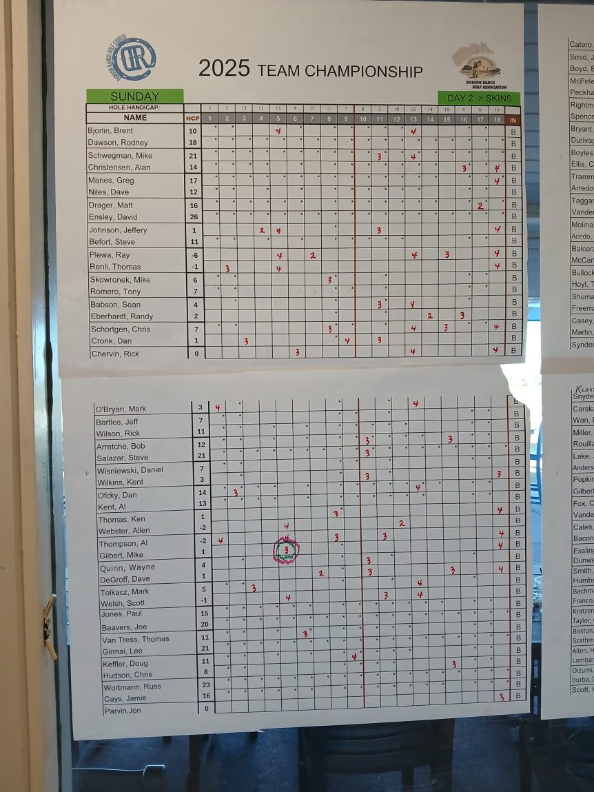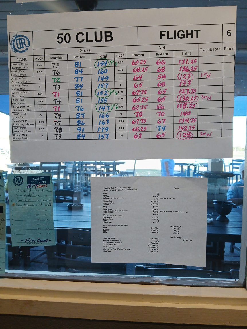 Tee Sheet November 9, 2025