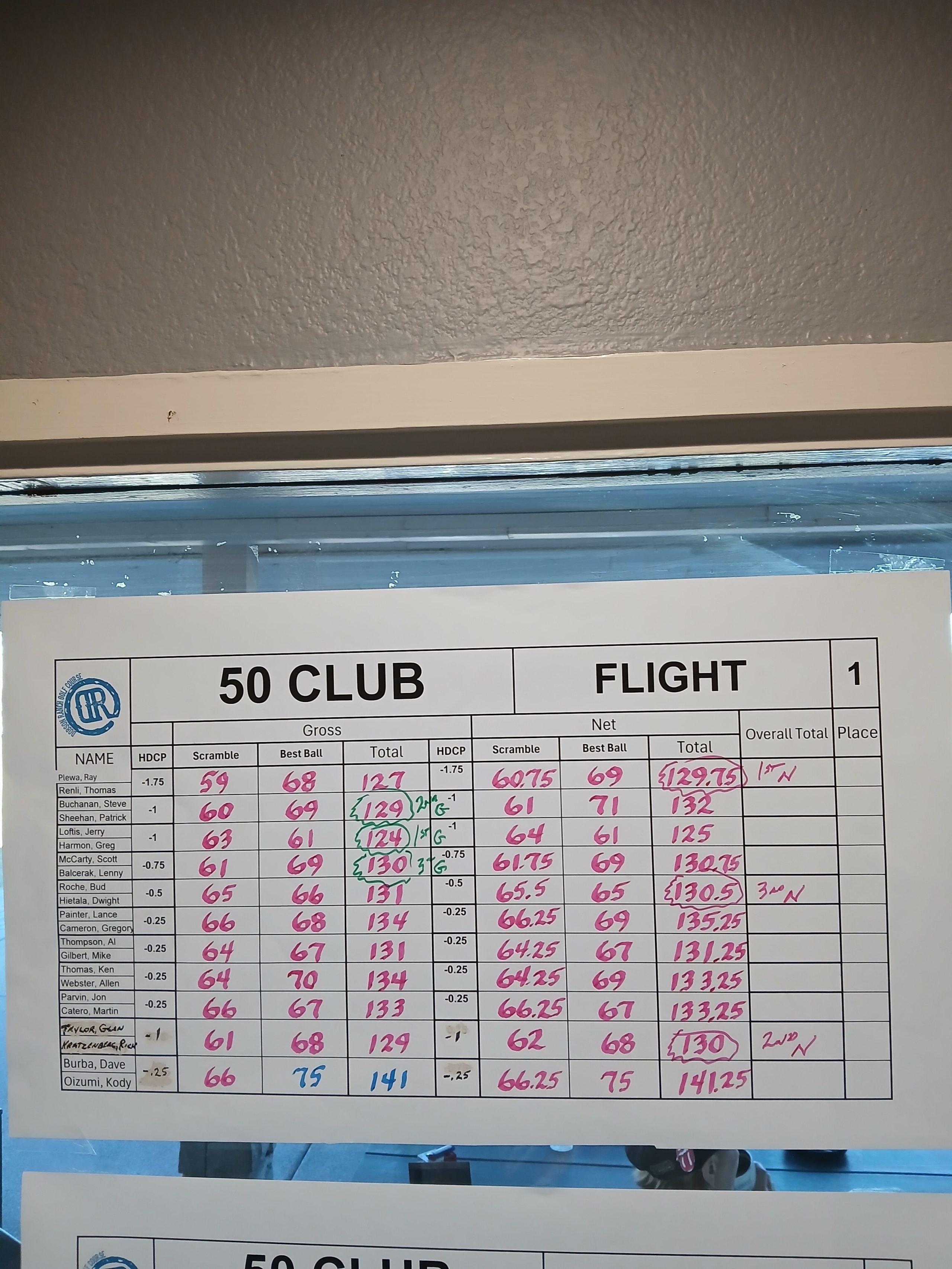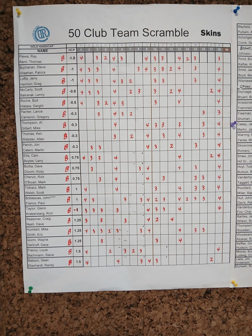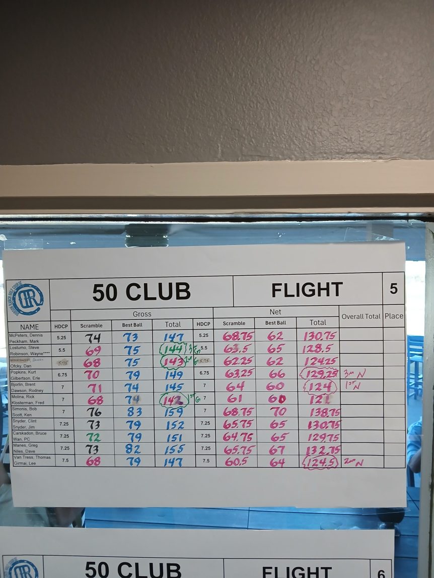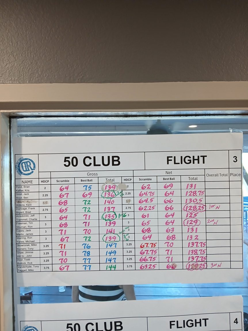 Tee Sheet November 9, 2025